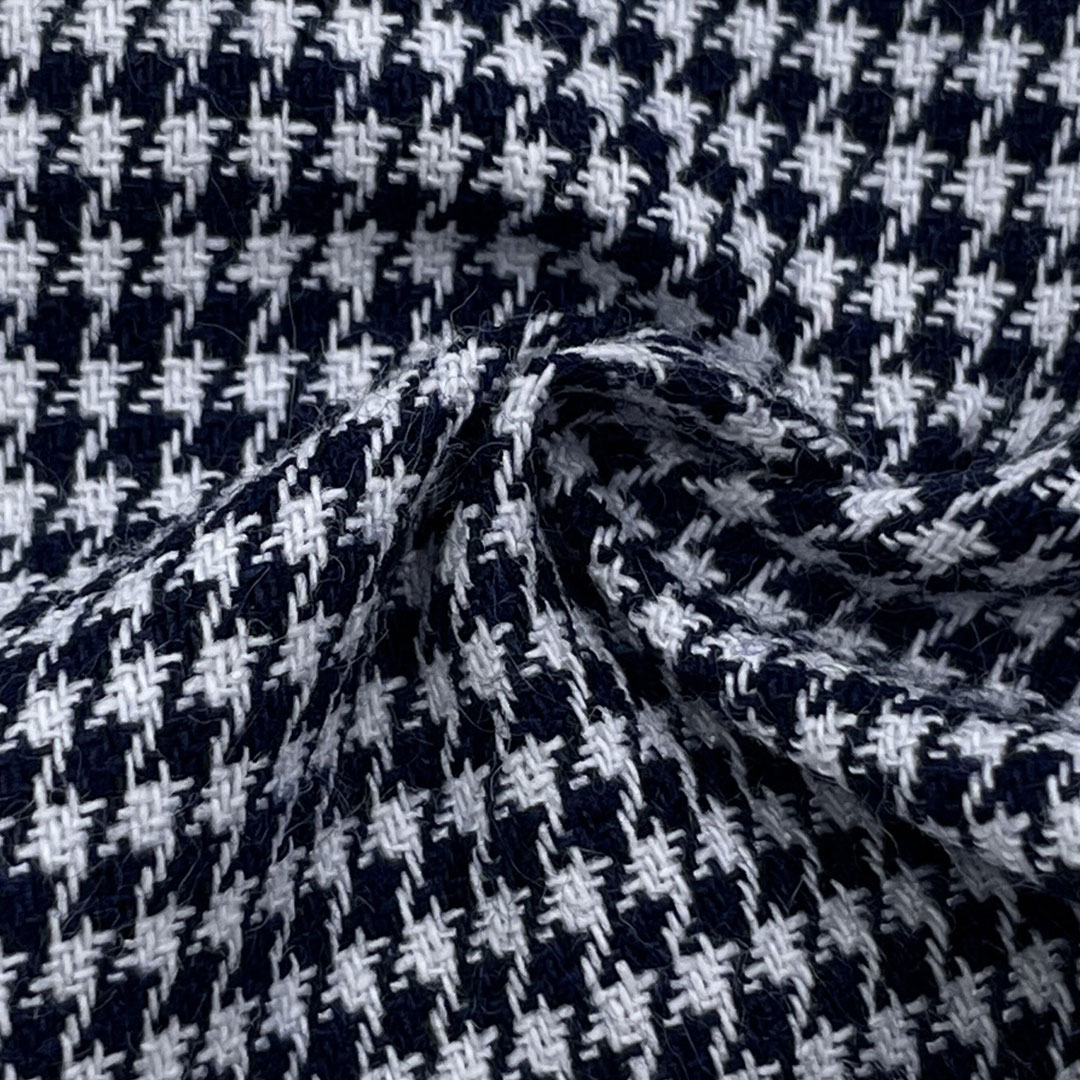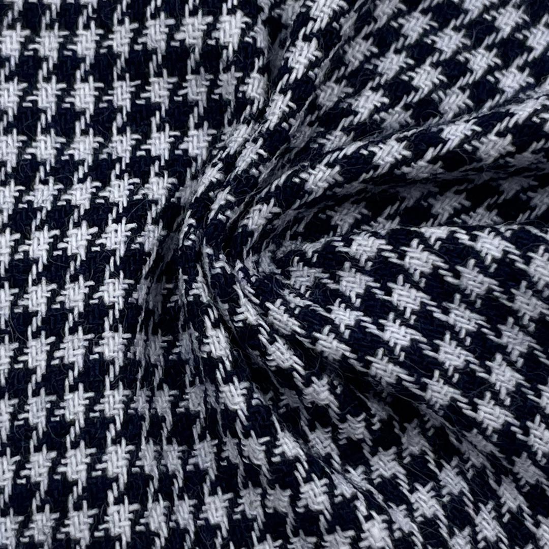 Whether designing a chic dress for formal occasions or a sharp blazer for professional settings, this Houndstooth Textured Fabric delivers a perfect blend of classic style, practicality, and enduring quality.