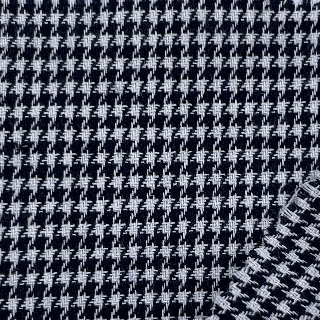 Embrace timeless elegance with our 250gsm Houndstooth Textured Fabric, expertly crafted from 35% Cotton and 65% Polyester. This sophisticated fabric features the classic houndstooth pattern that creates a distinctive textured surface, combining visual depth with a tactile experience. The cotton content provides natural softness and breathability, while the polyester ensures exceptional shape retention, durability, and resistance to wrinkles and shrinkage.