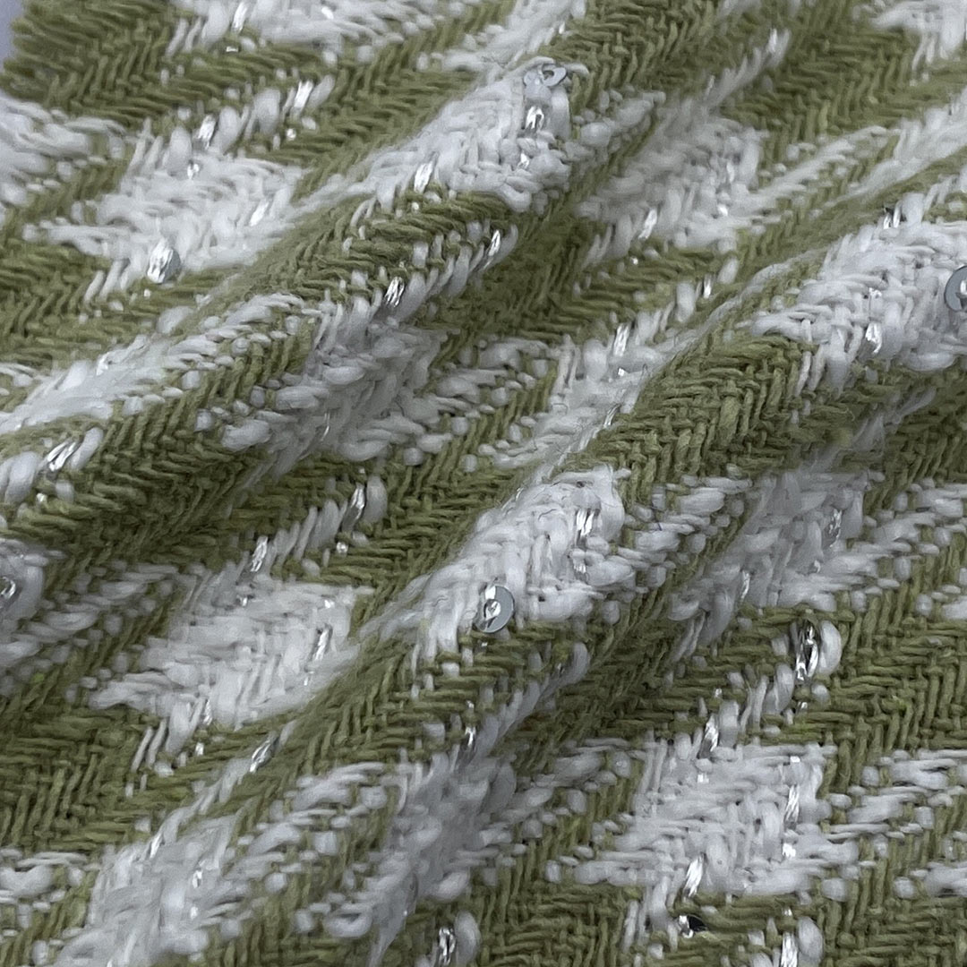 his heavyweight fabric demonstrates outstanding versatility, making it ideal for creating elegant dresses with structural presence, tailored blazers for professional environments, refined coats for formal occasions, decorative cushions for high-end interiors, and premium packaging for luxury products. The polyester foundation ensures superior color retention, wrinkle resistance, and long-lasting performance, while the wool content adds natural insulation, breathability, and a refined hand feel. The textured surface elevates the fabric's premium quality, while the timeless geometric pattern provides an aesthetic that remains elegant across seasons.
