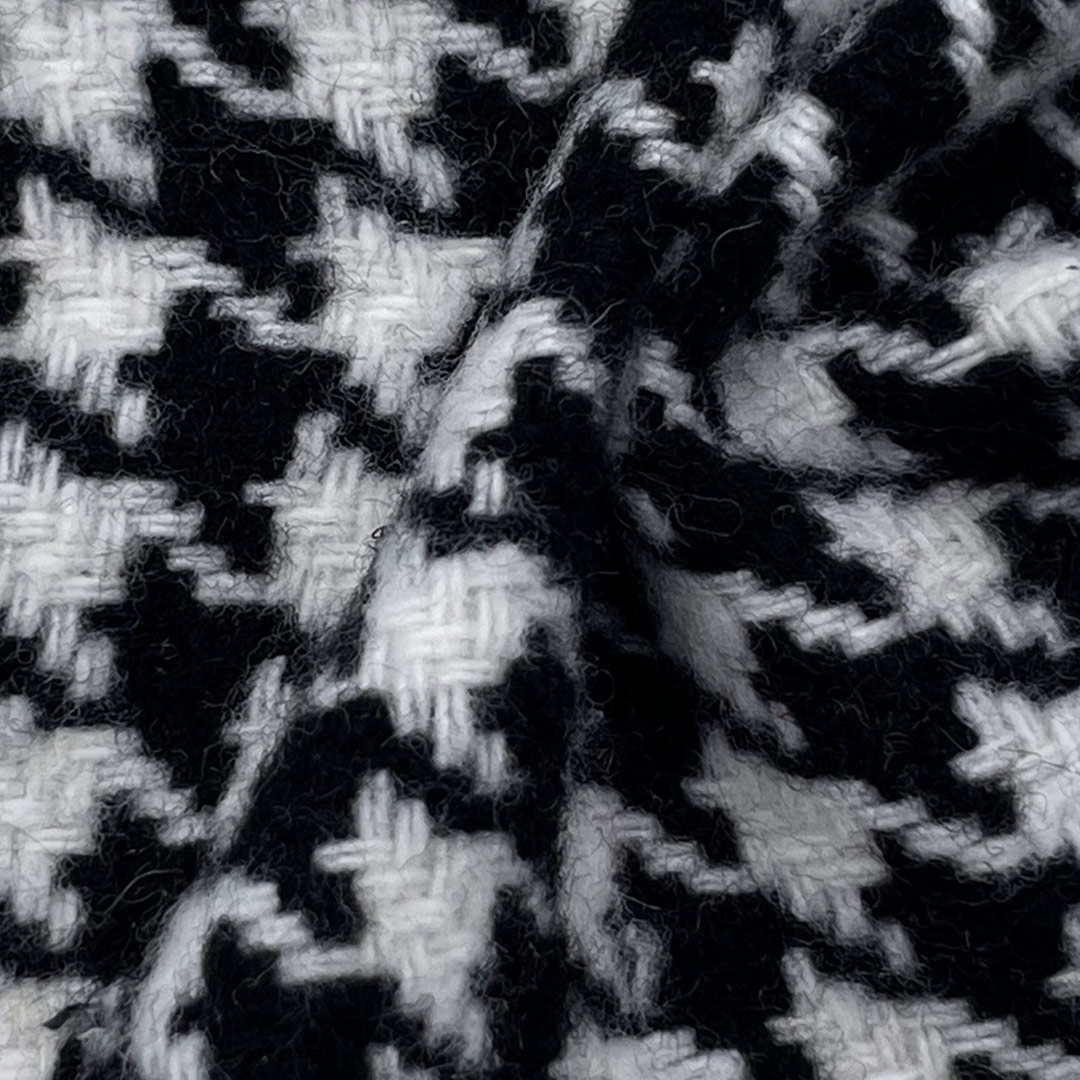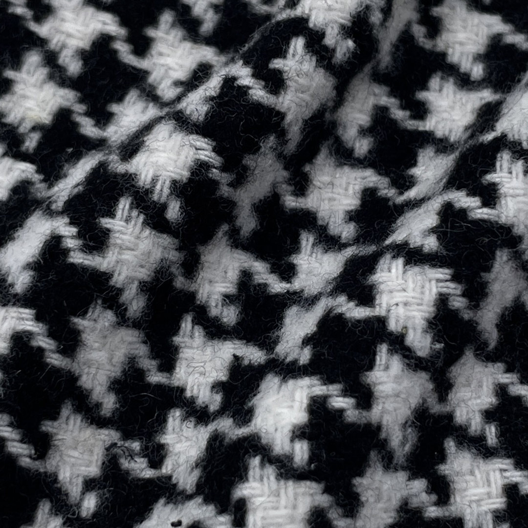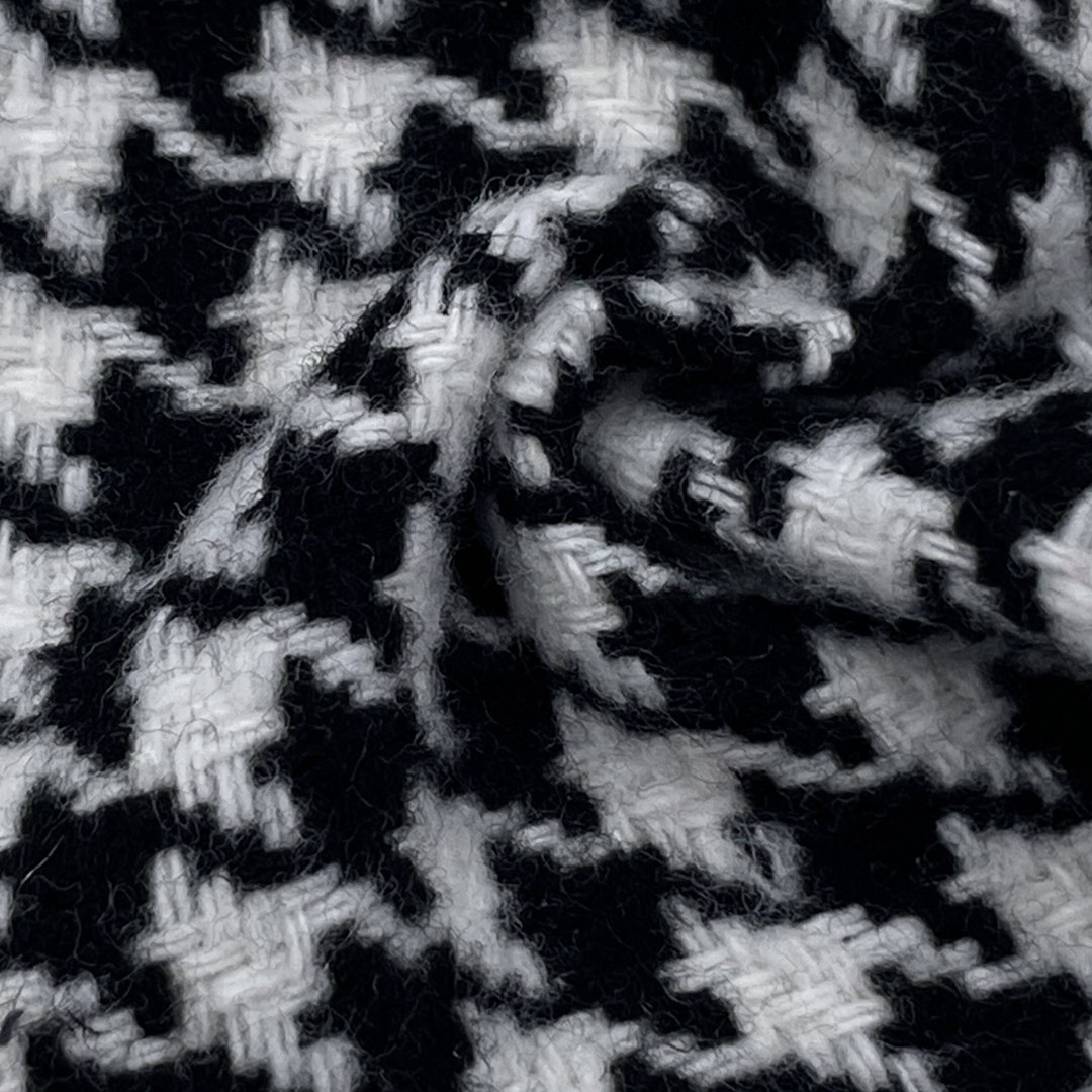 Engineered for sophistication and durability, our 400gsm Houndstooth Fabric is crafted entirely from 100% Polyester to deliver a heavyweight material that excels in both structure and visual appeal. This fabric features the classic houndstooth pattern, characterized by its broken checks and textured surface, adding a timeless elegance to garments and home accessories alike.