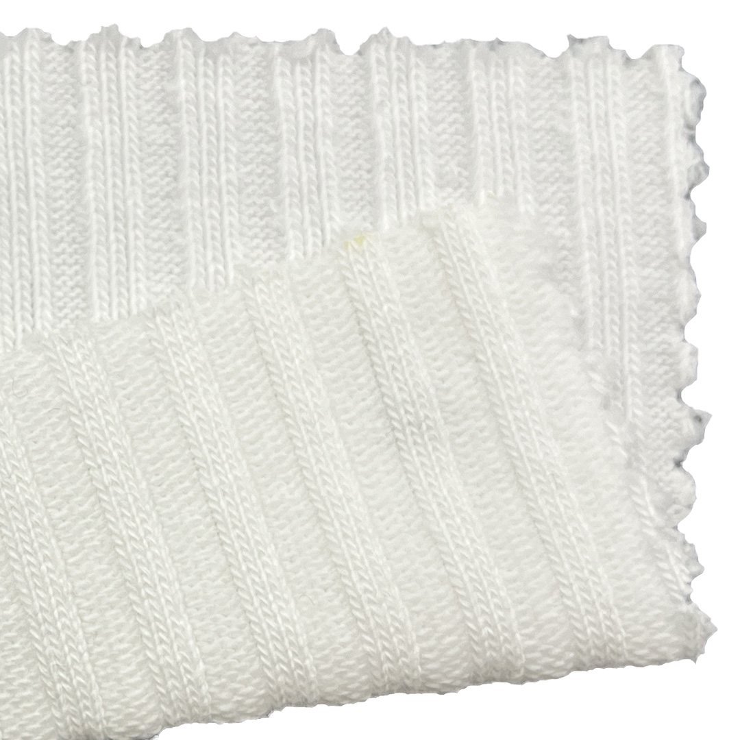 This fabric features a distinctive ribbed texture that provides visual depth and enhanced elasticity, while delivering an exceptionally soft hand feel against the skin. The high cotton content ensures excellent breathability and moisture-wicking properties, keeping you comfortable in various climates, while the 5% Spandex offers optimal stretch and recovery for ease of movement and a flattering fit. Weighing 320gsm, this substantial fabric provides cozy warmth and excellent coverage, making it ideal for garments designed for cooler weather or transitional seasons. The ribbed construction not only adds aesthetic appeal but also improves the fabric's durability and shape retention, ensuring garments maintain their structure over time. Easy to care for and machine washable, this fabric retains its soft texture, vibrant colors, and functional properties through repeated wear and washing.