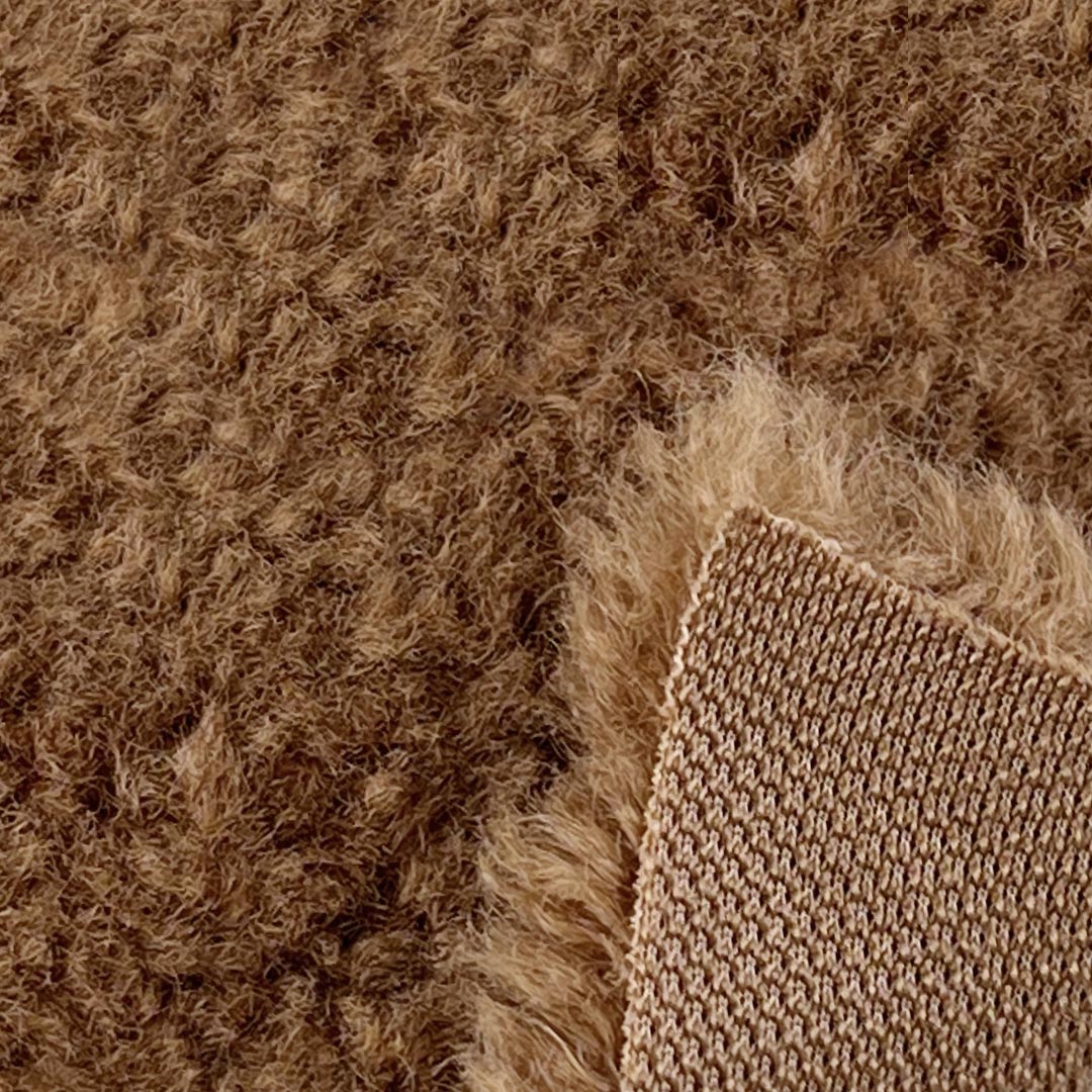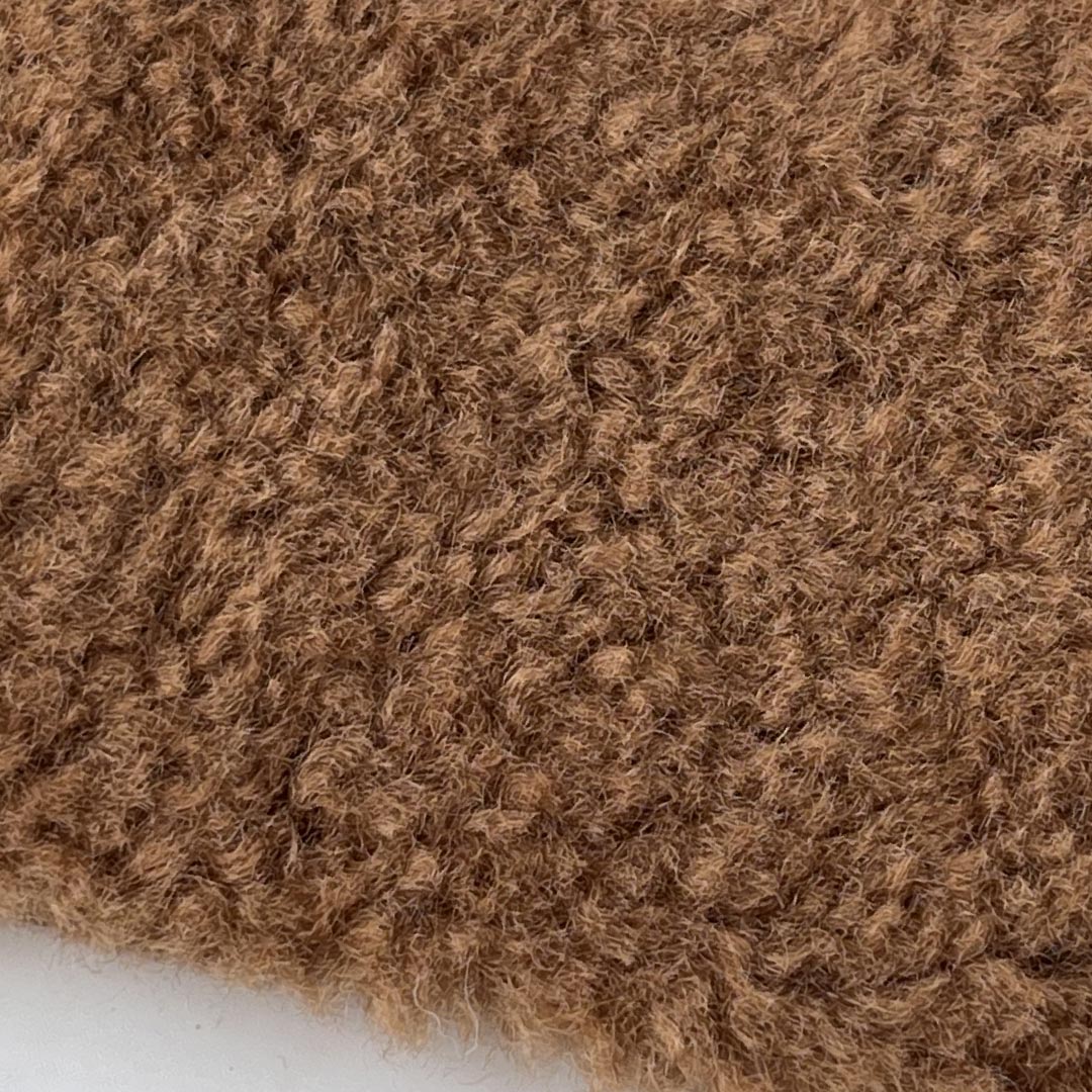 The deep-pile fleece interior creates a cloud-like softness, while the textured exterior adds visual interest and a rustic, inviting appeal. Made entirely from durable polyester, this fabric ensures long-lasting performance, resistance to pilling, shrinking, and moisture, and easy maintenance. The soft, brushed surface enhances comfort, while the structured yet flexible build allows for tailored fits in jackets and relaxed silhouettes in hoodies.