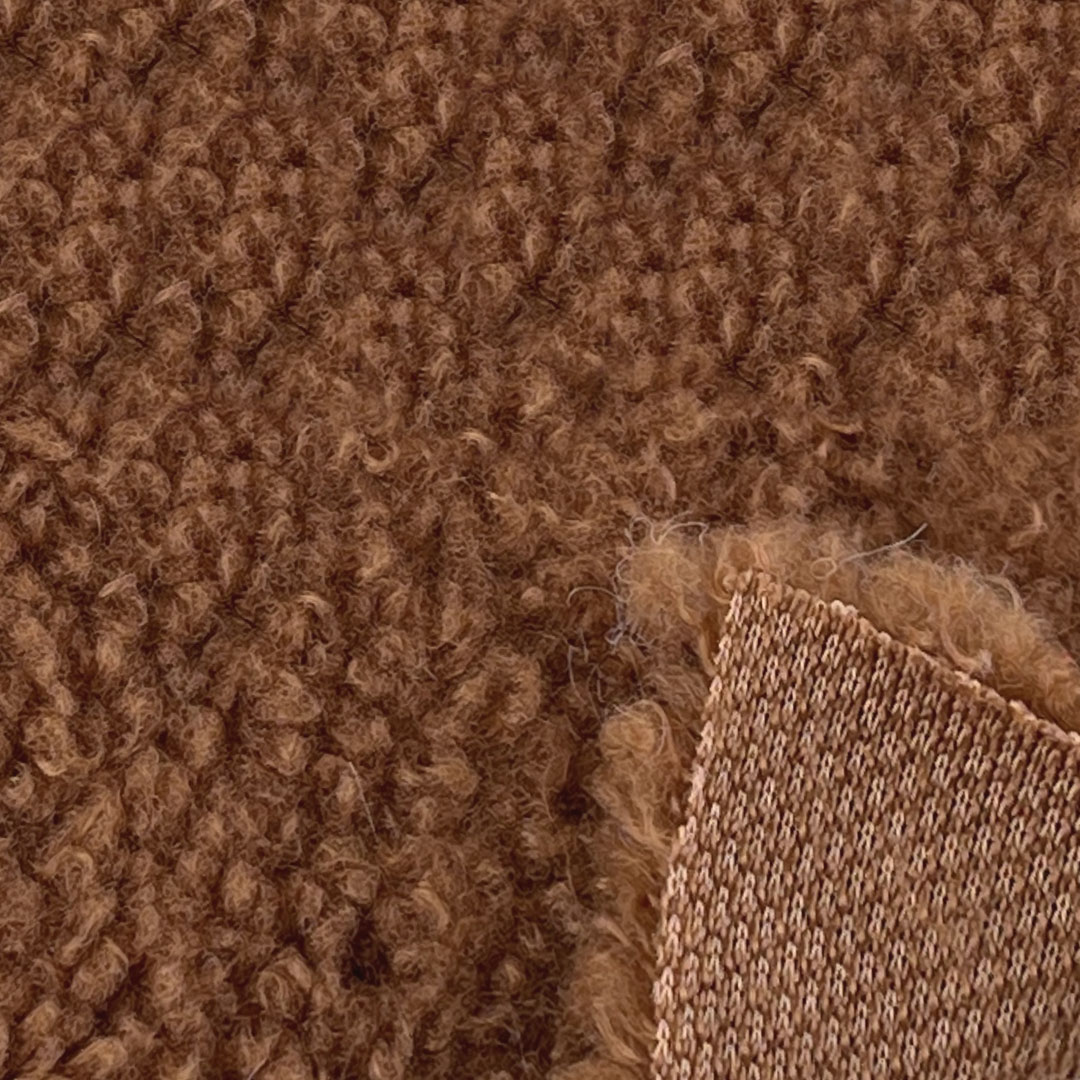 The Sherpa surface feels incredibly soft against the skin, creating a comforting barrier against the cold without adding excessive weight or bulk. With a substantial yet flexible drape, this fabric maintains its fluffy texture and structural integrity even after repeated use and washing. Its breathable construction helps regulate body temperature, ensuring comfort during extended wear in various conditions. Easy to care for and machine washable, this Sherpa Fabric retains its plush appearance, vibrant hues, and reliable performance over time.